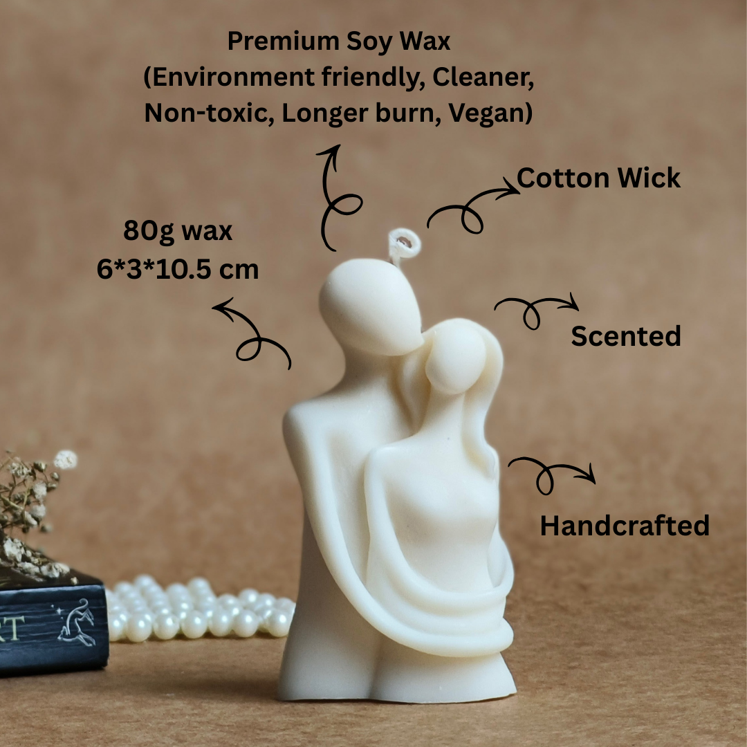 Celebrate connection and warmth with the Dreamy Love Candle, a romantic couple-shaped candle hand-poured to perfection. Crafted from a premium coconut-soy wax blend, it offers a clean, smooth burn while adding a touch of artful intimacy to your space.